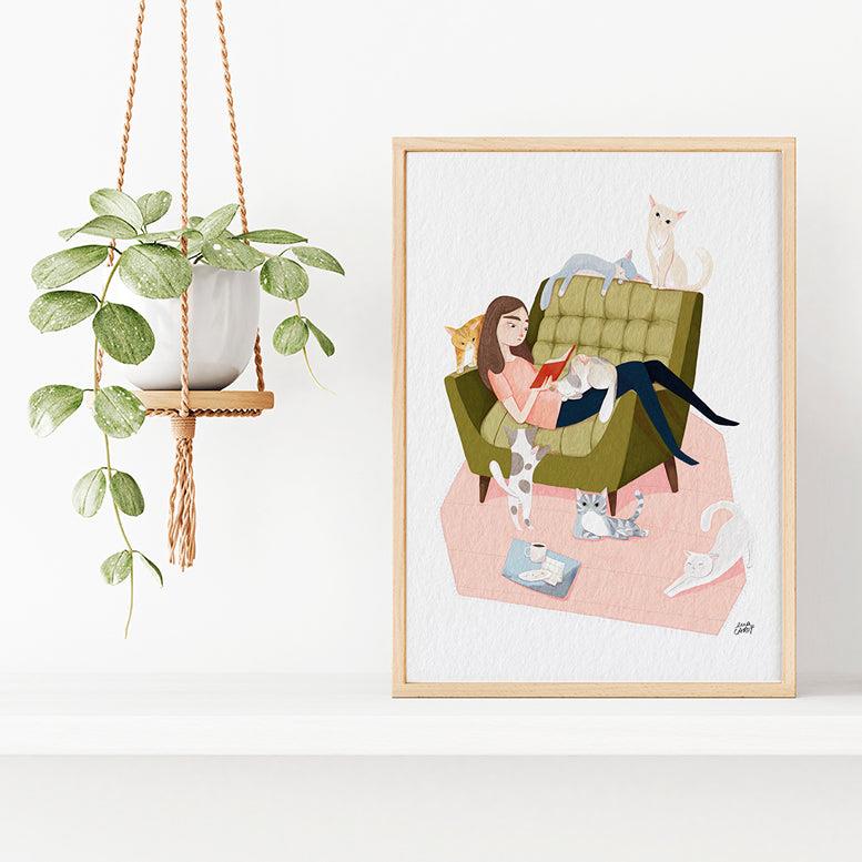 CUQUILAND | Lámina Eva Carot - Gatos y Libros (A3)