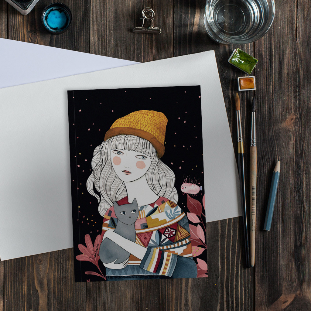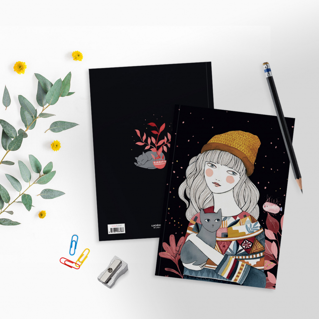 Cuaderno «Luciérnagas» ilustrado por Lady Desidia de 112 páginas con malla de puntos.