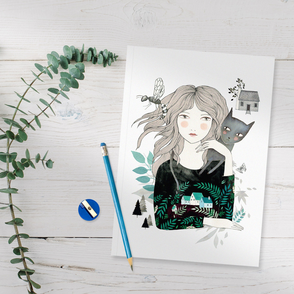 Cuaderno «Uma» ilustrado por Lady Desidia de 112 páginas con malla de puntos.