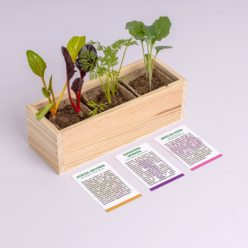 El más raro de todos los Mini huertos. Con él podrás cultivar acelga arcoiris, zanahoria morada y brócoli rosa.