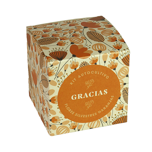 Kit de autocultivo de flores silvestres en cajita con mensaje.