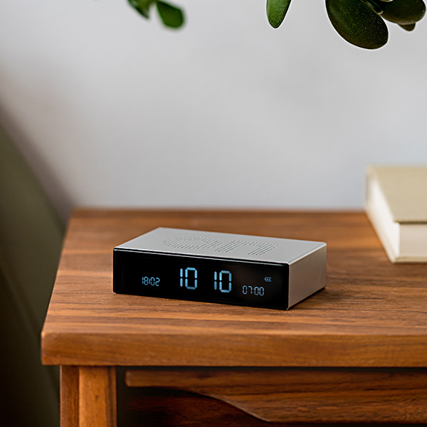 El legendario reloj despertador Flip está ahora disponible en una versión premium y cuenta con un acabado de aluminio y una pantalla LCD de color negro puro.