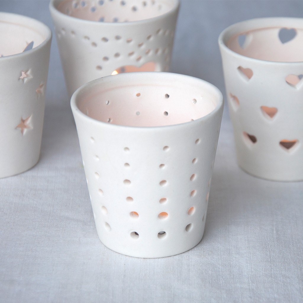 Portavelas de cerámica con agujeros